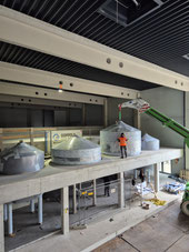 angeliefert und eingebracht. Insgesamt vier Gefäße mit einem Fassungsvermögen von je 8.000 Litern, gefertigt von der Firma Roth in Wiesenbronn bei Kitzingen, bilden künftig das Herzstück der